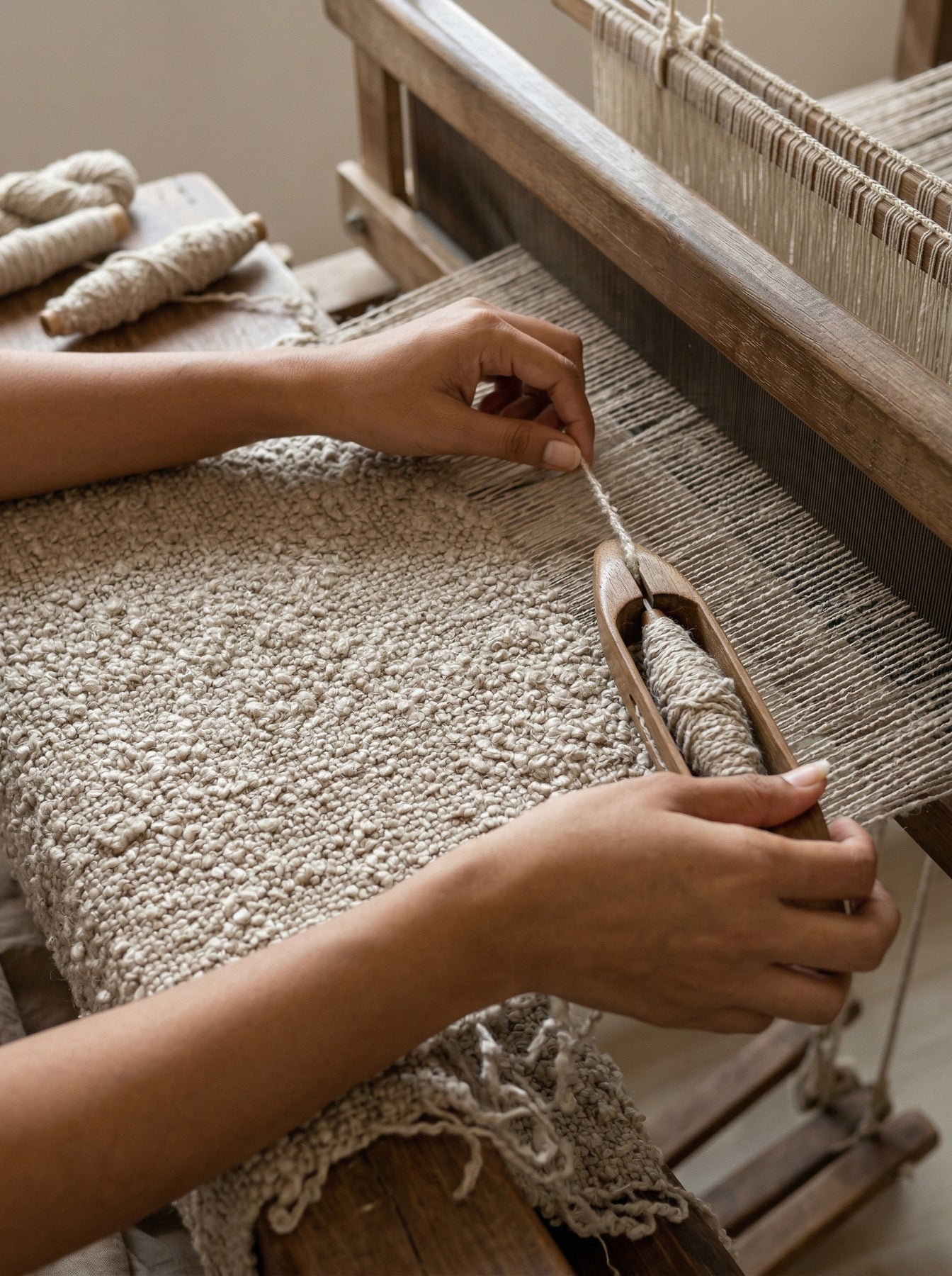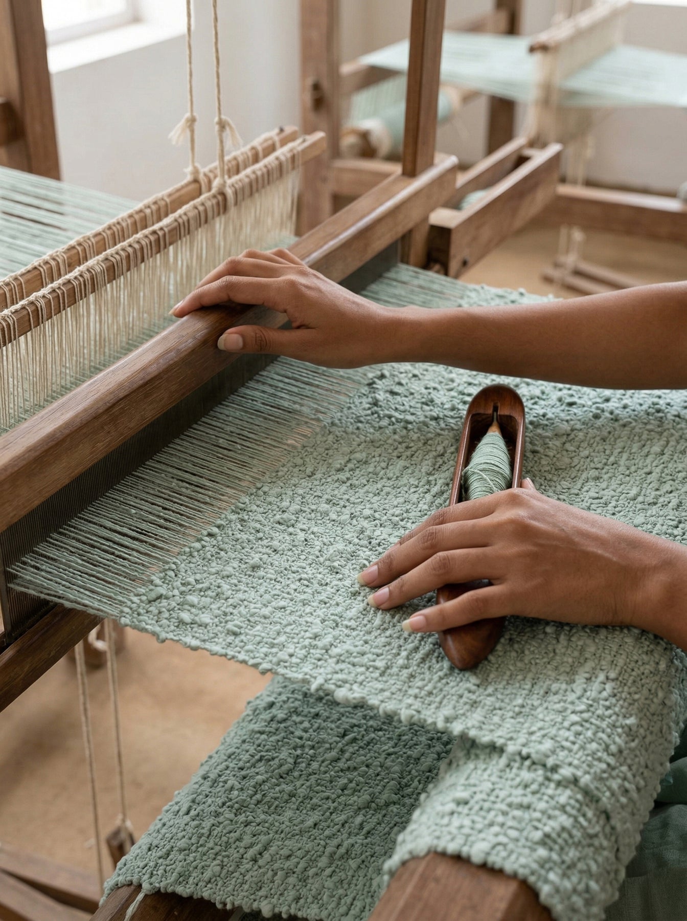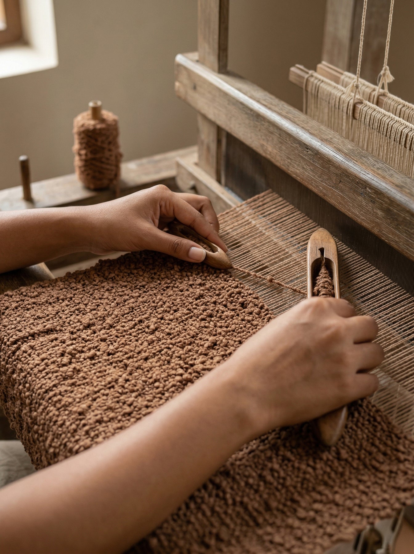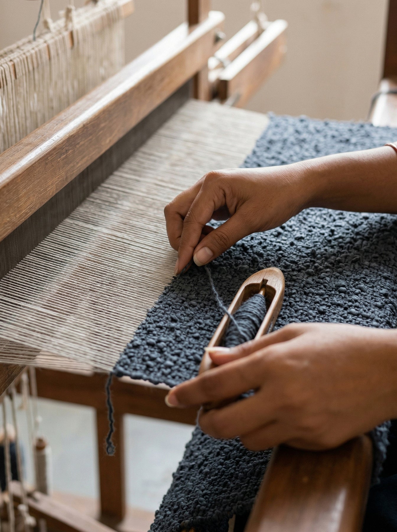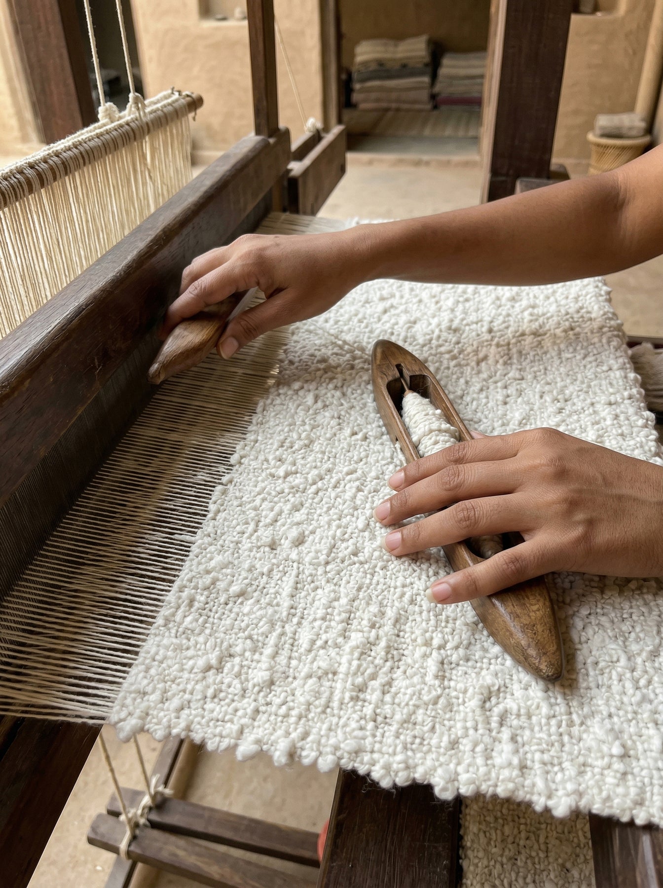 Handwoven on a traditional weaving loom by Artisans in India.