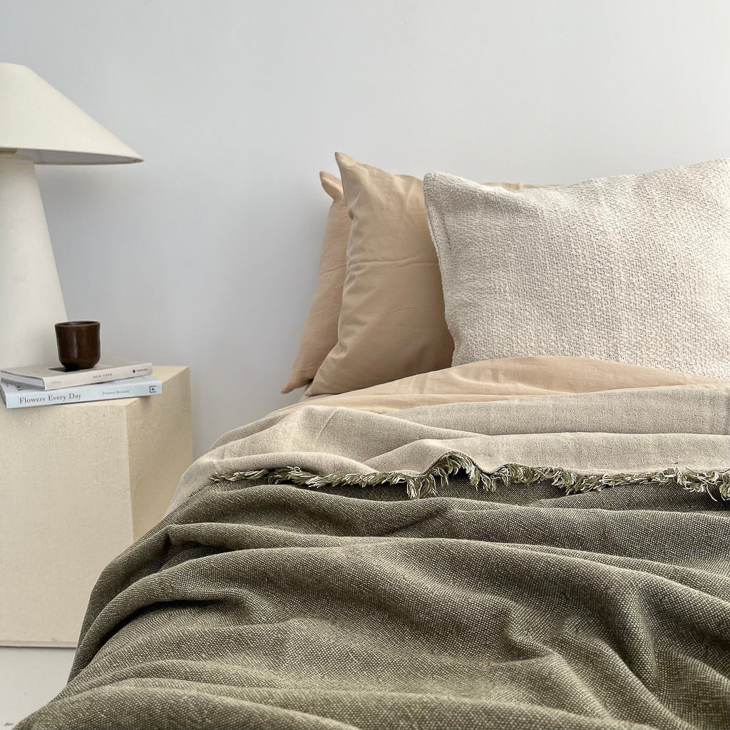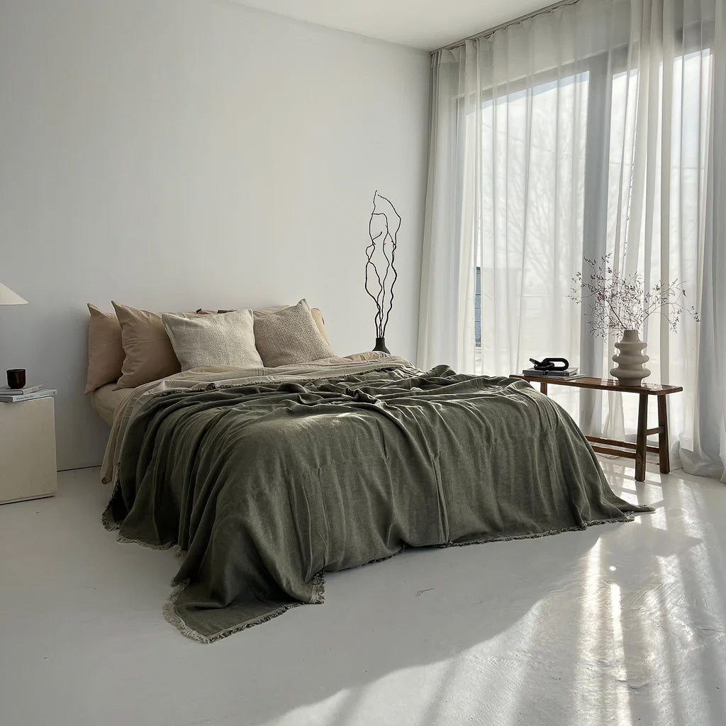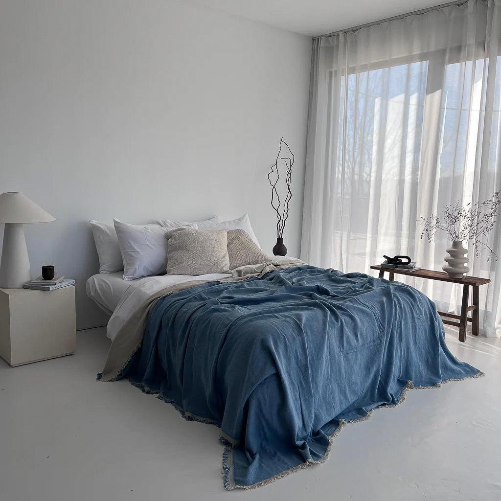 The Linen Fringe Blanket effortlessly transitions from the living room to the bedroom, offering comfort, versatility, and a luxurious feel. Crafted in Turkey from high-quality, soft fabric, it’s sure to become your favorite throw.