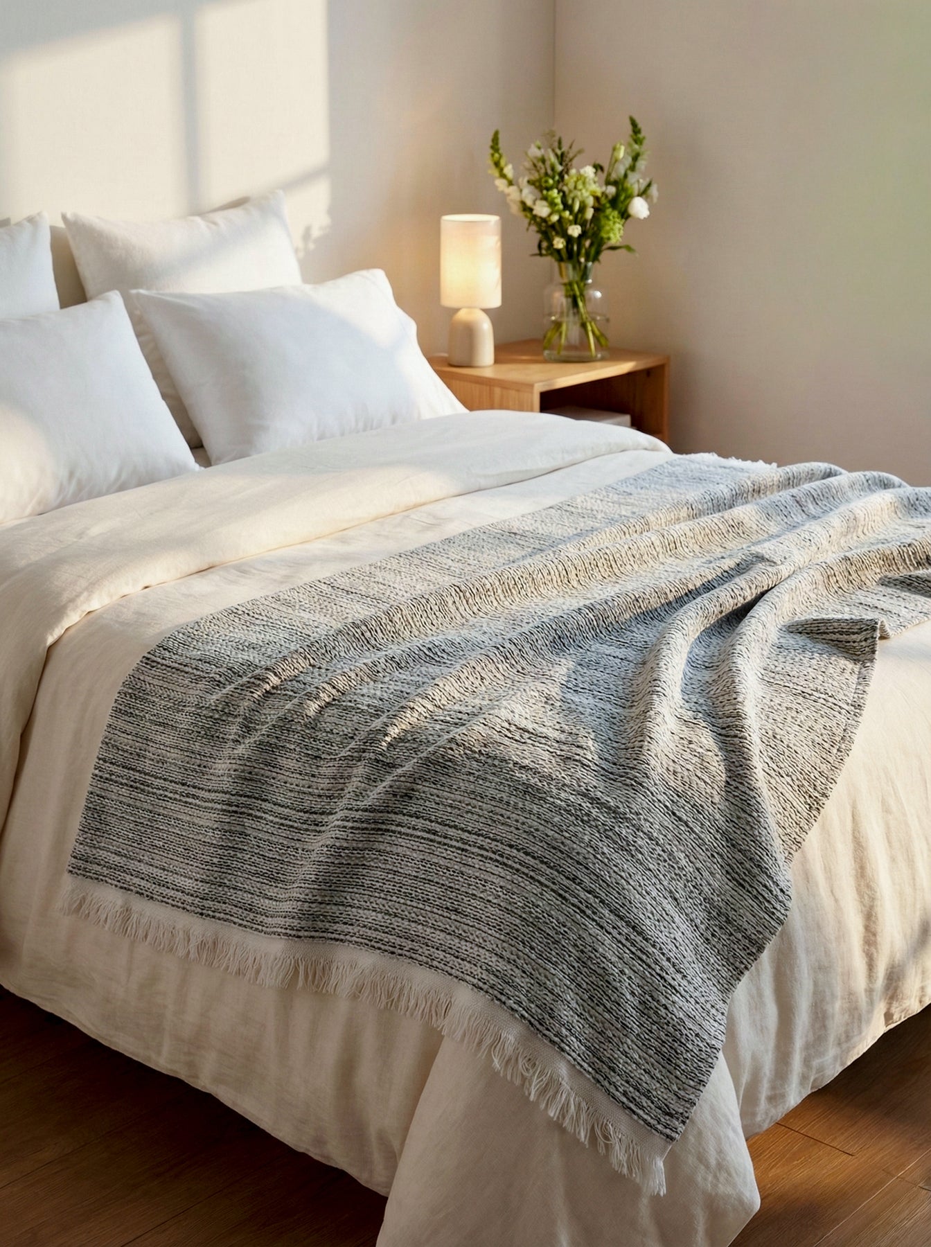 The crinkled yarns are intricately woven with two tones, creating the coziest and softest fabric, perfect for those moments of relaxation and cuddling up. And for your convenience, it's easily maintained with a simple machine wash.