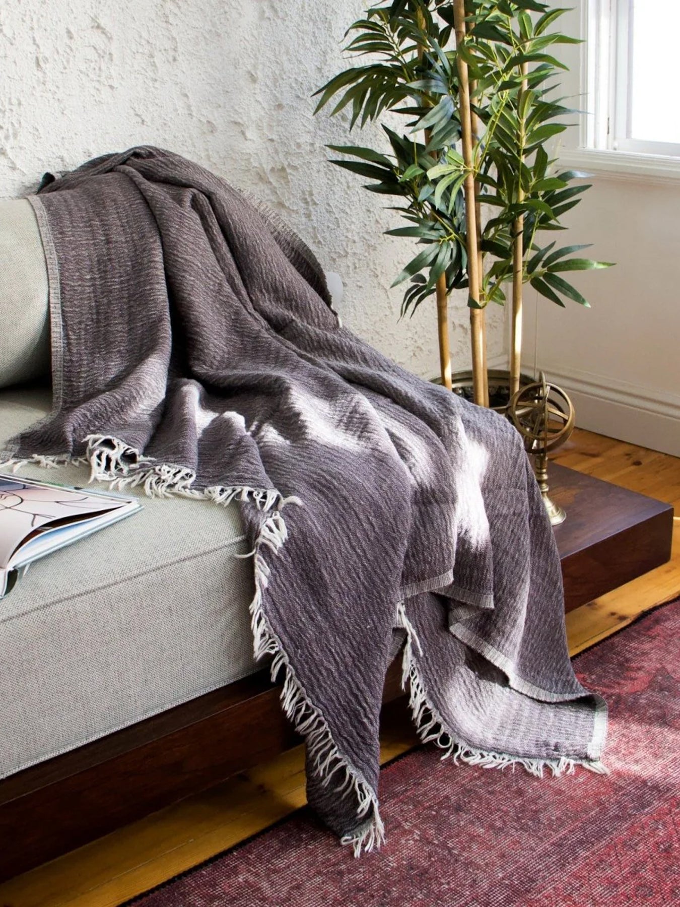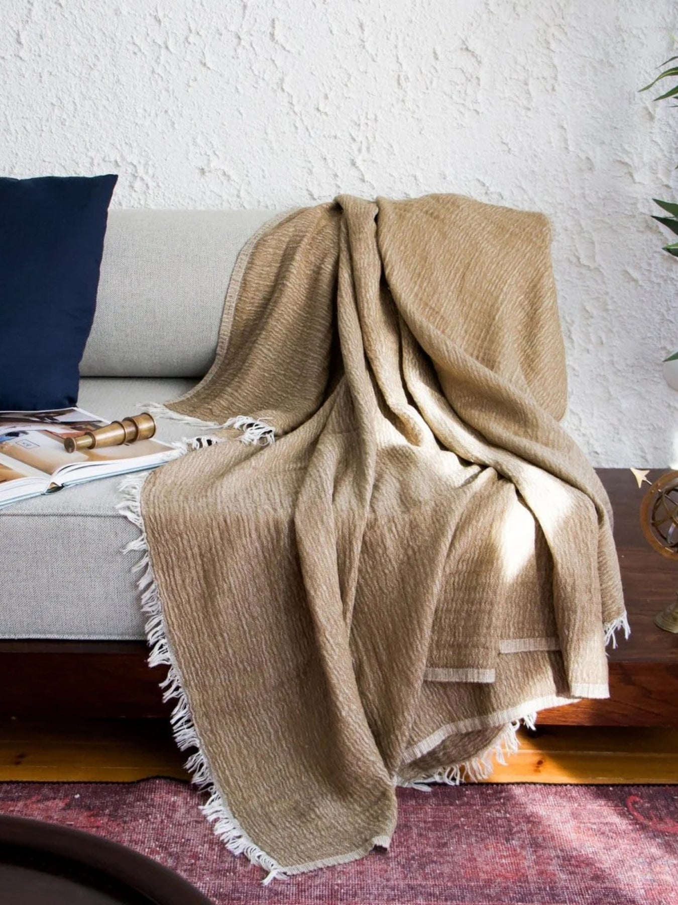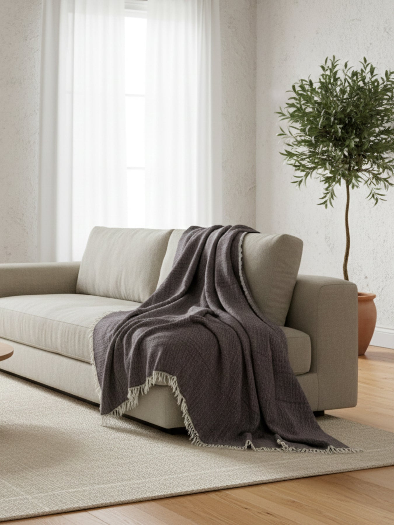 Crafted from premium Turkish cotton, this throw features a softly textured weave with subtle tonal variation and delicate fringe detailing for an effortlessly relaxed, refined look. Lightweight yet cozy, it drapes beautifully over a sofa or bed, adding understated warmth and elevated comfort to any space.